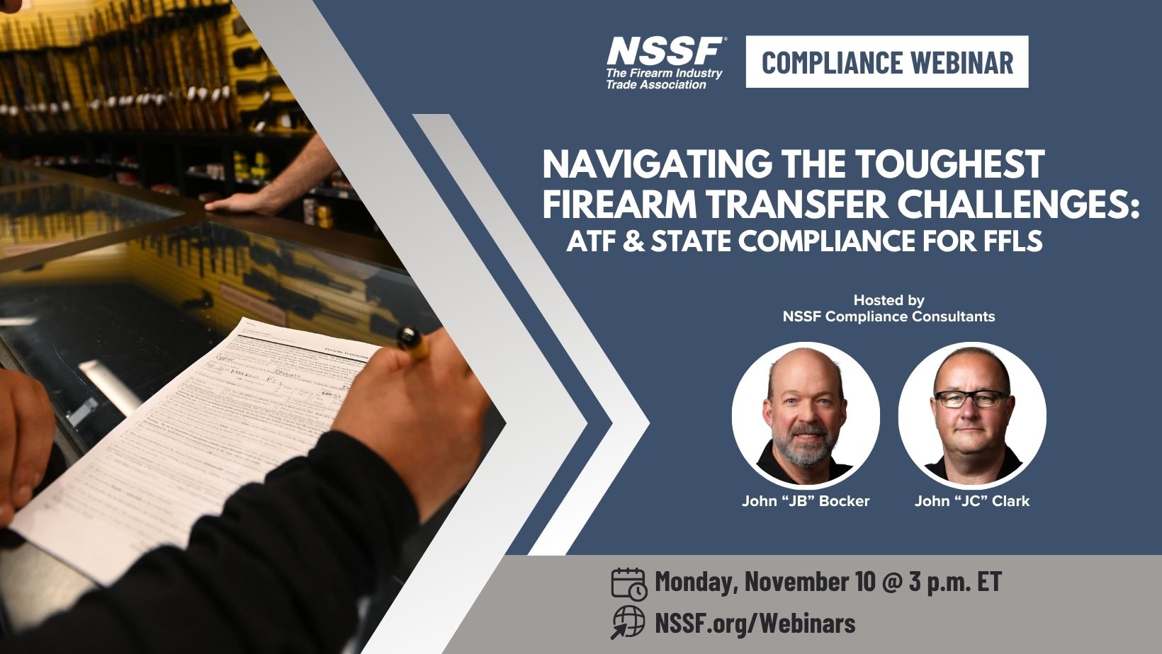 Join NSSF Compliance Consultants for a focused session designed for Federal Firearms Licensees (FFLs) navigating complex and frequently misunderstood firearm transfer scenarios—particularly in restricted states. This training will clarify the “how” and “why” behind each situation to help strengthen your compliance practices.