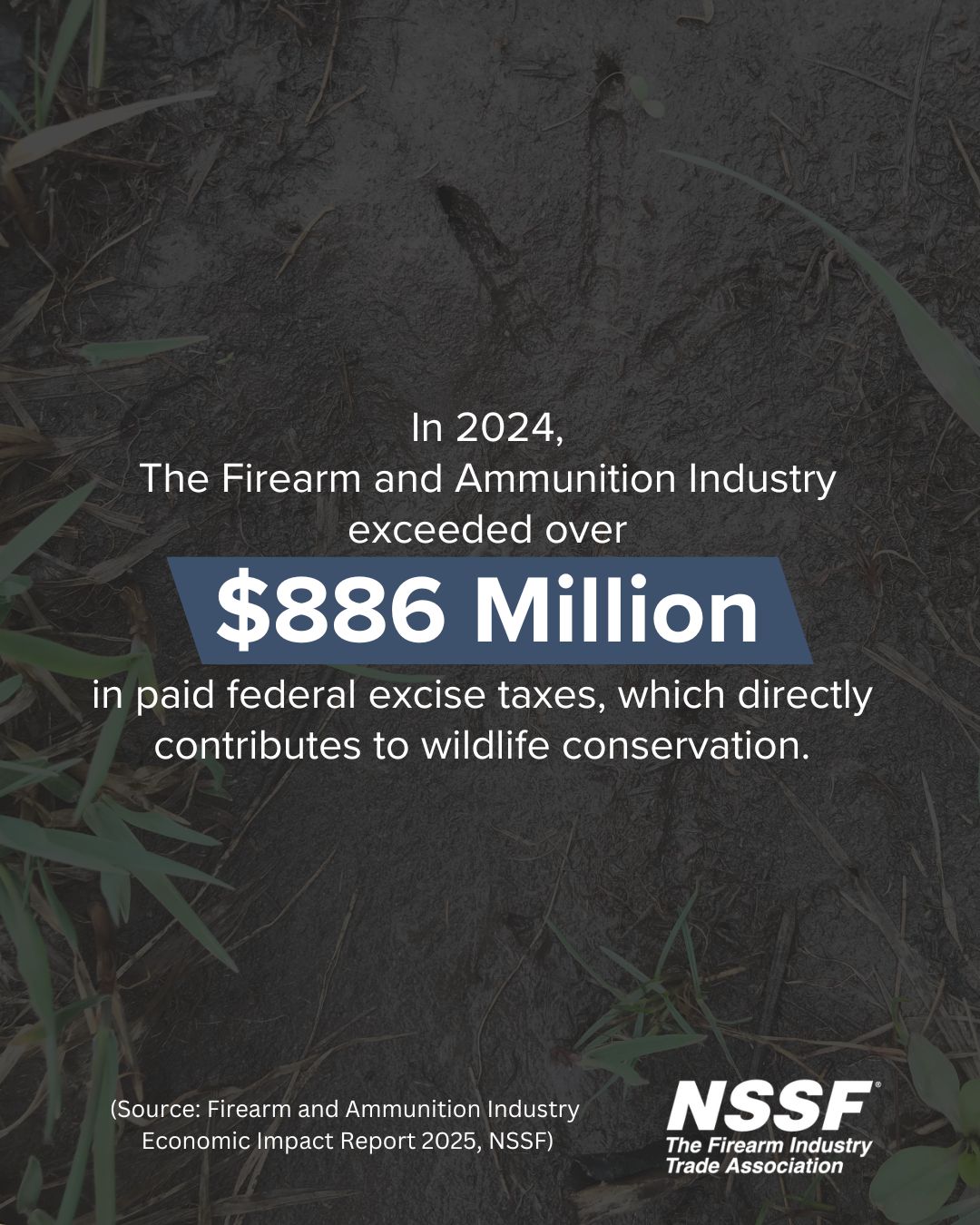 The report also highlights the significant impact the firearm and ammunition industry has on wildlife conservation funding in America through its growing Pittman-Robertson excise tax contributions to the Wildlife Restoration Trust Fund, which exceeded $886 million in 2024. Since 1937, the industry has paid nearly $29 billion into the fund since its inception in 1937, when adjusted for inflation.